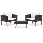 vidaXL Loungegrupp för trädgården med dynor 3 delar konstrotting svart 310218
