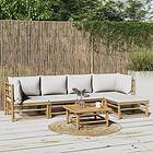 vidaXL Loungegrupp 6 delar ljusgråa dynor bambu 3155104