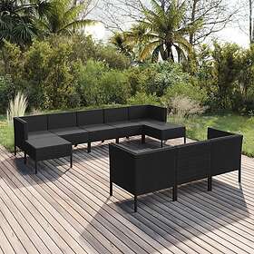 vidaXL Loungegrupp för trädgården med dynor 10 delar konstrotting svart 3094581