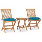 vidaXL Hopfällbar matgrupp med dyna för trädgården 3 delar massiv teak 3063190