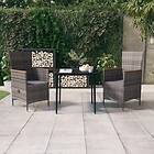 vidaXL Ensemble de salle à manger de jardin avec coussins 3 pièces Gris 3099449