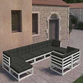 vidaXL Loungegrupp med dynor 9 delar vit massiv furu 3077155