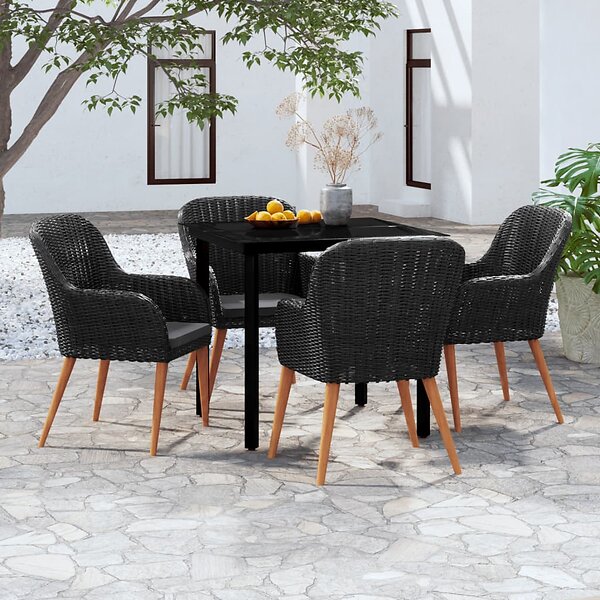 vidaXL Matgrupp för trädgården med dynor 5 delar svart 3099506