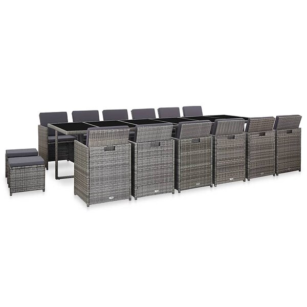 vidaXL Matgrupp för trädgården med dynor 17 delar konstrotting grå 46430