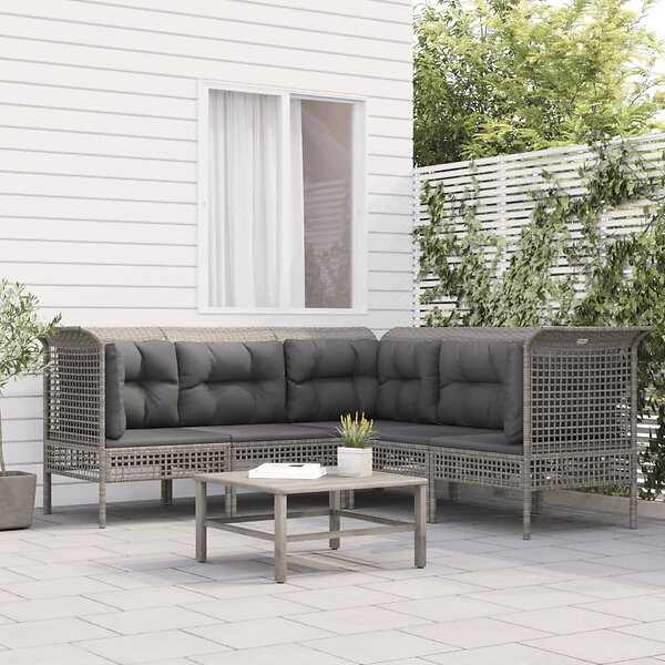 vidaXL Trädgårdssoffa med dynor 5 delar grå konstrotting 319666