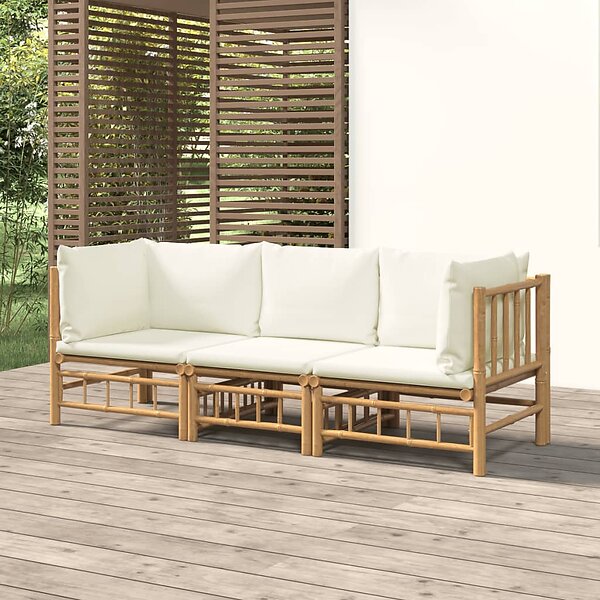 vidaXL Loungegrupp för trädgården med gräddvita dynor 3 delar bambu 3155183