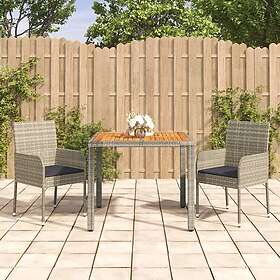 vidaXL Matgrupp för trädgården med dynor 3 delar konstrottning grå 3184993