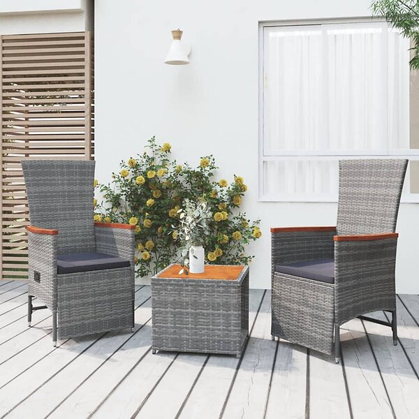 vidaXL Loungegrupp för trädgården 3 delar grå konstrotting&akacia 3157654