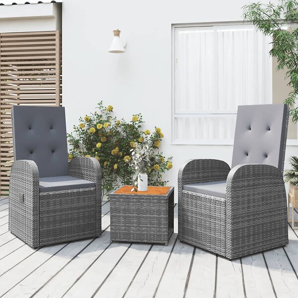 vidaXL Loungegrupp för trädgården 3 delar grå konstrotting&akacia 3157655