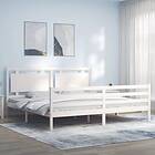 vidaXL cadre de lit med huvudgavel vit 200x200 cm massivt trä 3194072