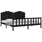 vidaXL cadre de lit med huvudgavel svart 200x200 cm massivt trä 3192320