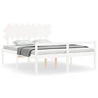 vidaXL cadre de lit med huvudgavel vit 160x200 cm massivt trä 3195557