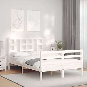 vidaXL cadre de lit med huvudgavel vit dubbelsäng massivt trä 3193892