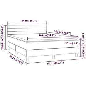 vidaXL Lit à ressort med madrass & LED mörkbrun 140x200 cm tyg 3133560
