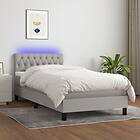 vidaXL Lit à ressort med madrass & LED ljusgrå 100x200 cm tyg 3133373