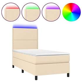 vidaXL Lit à ressort med madrass & LED gräddvit 100x200 cm tyg 3134778