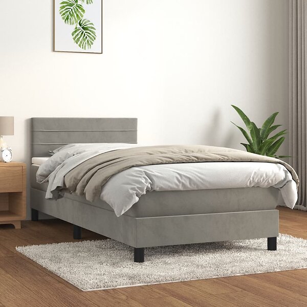 vidaXL Lit à ressort med madrass ljusgrå 90x200 cm sammet 3141341