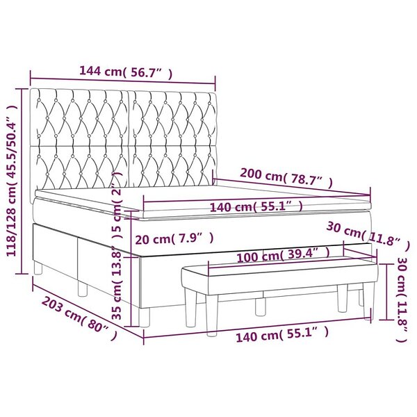vidaXL Lit à ressort med madrass taupe 140x200 cm tyg 3137401