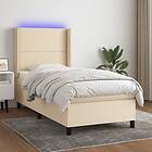 vidaXL Lit à ressort med madrass & LED gräddvit 100x200 cm tyg 3138218