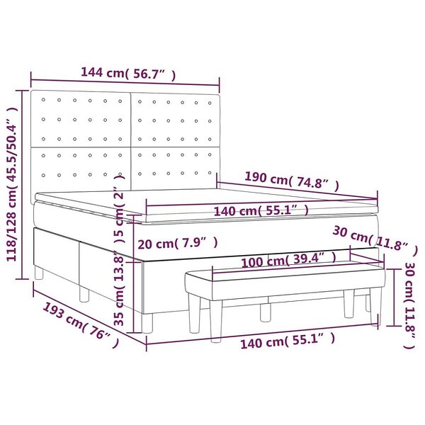 vidaXL Lit à ressort med madrass taupe 140x190 cm tyg 3137473