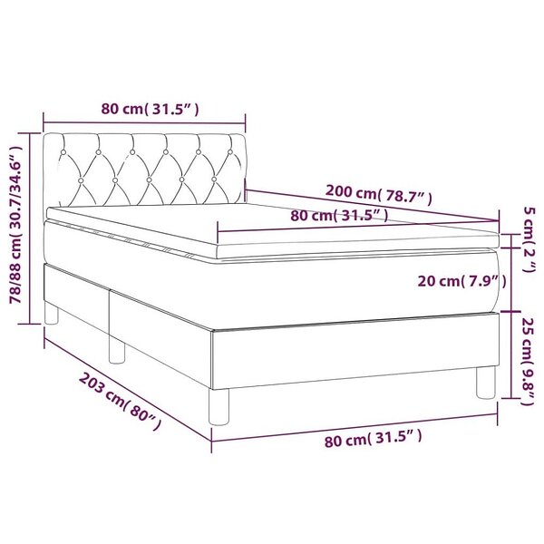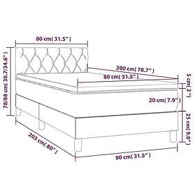 vidaXL Lit à ressort med madrass ljusgrå 80x200 cm tyg 3140249