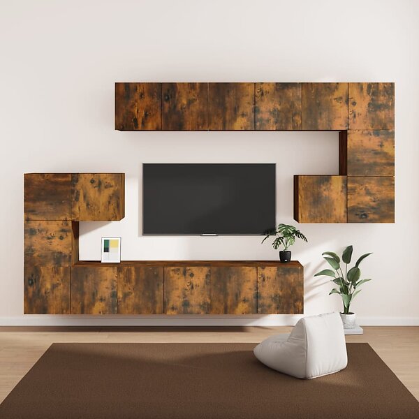 vidaXL TV-skåp 10 delar rökfärgad ek konstruerat trä 3120305