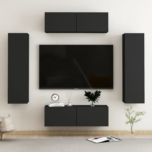 vidaXL Tv-skåp 4 delar svart konstruerat trä 3078772