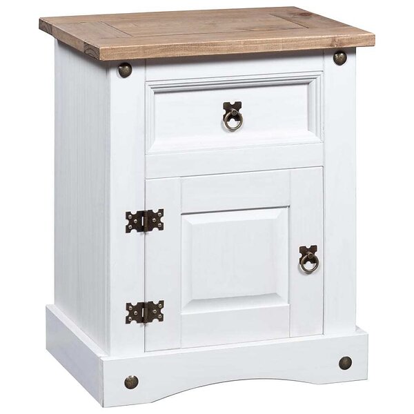 vidaXL Nattduksbord mexikansk coronastil furu vit 53x39x67 cm 282618