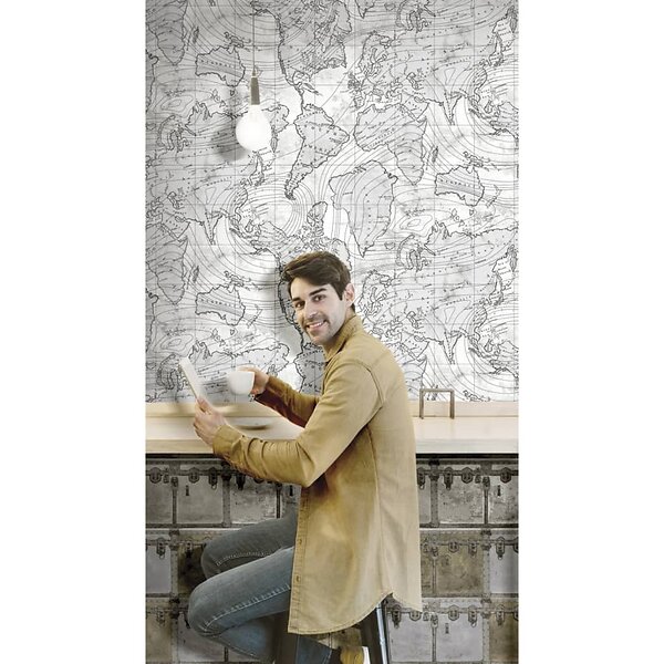 vidaXL Noordwand Tapet Friends & Coffee Boxes and Locks metallic och grå 444854