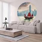 vidaXL WallArt Tapet cirkelformad Skyline with Junk Boat 142.5 cm 440350
