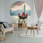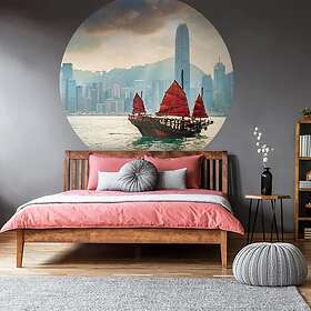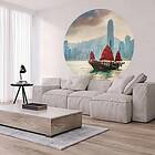 vidaXL WallArt Tapet cirkelformad Skyline with Junk Boat 190 cm 440349