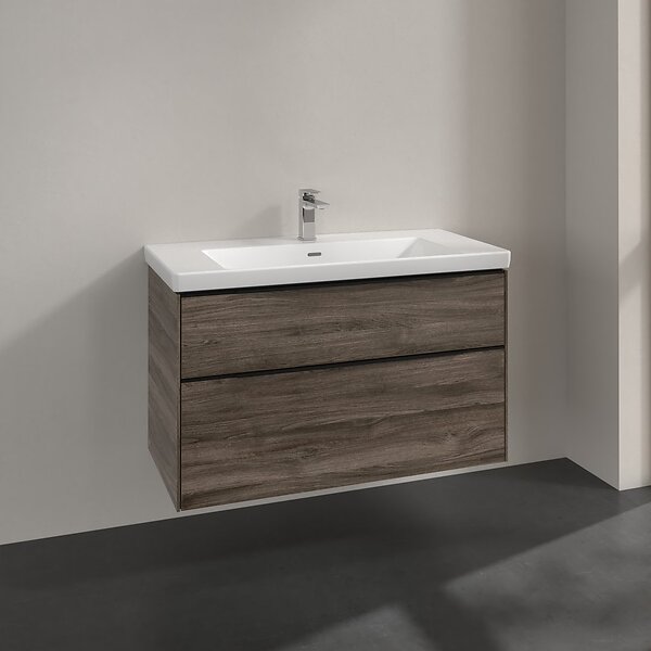 Villeroy & Boch Subway 3.0 Servantskap m/2 skuffer 973x576x478 mm, Steingrå Eik