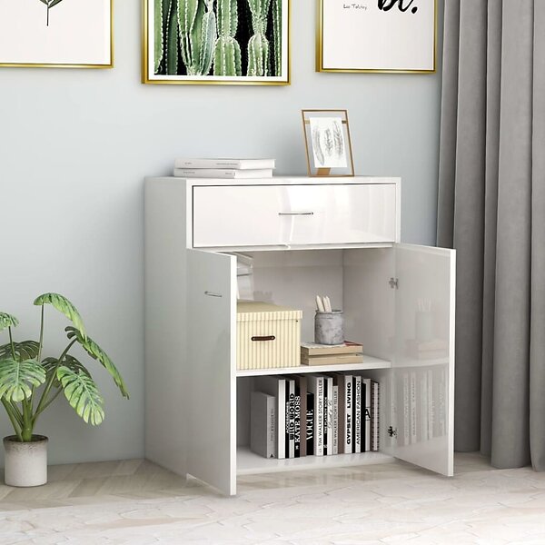 vidaXL Skänk vit högglans 60x30x75 cm spånskiva 800717