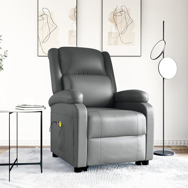 vidaXL Massagefåtölj med uppresningshjälp grå konstläder 3110860