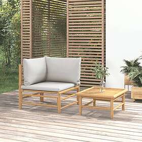vidaXL Loungegrupp för trädgården 3 delar mörkgråa dynor bambu 362305
