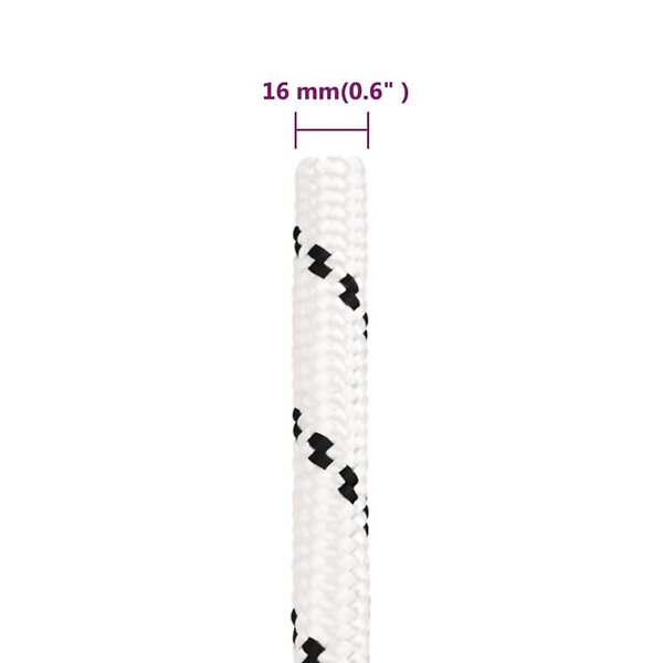 vidaXL Båtlina flätad vit 16 mm x 25 m polyester 152783
