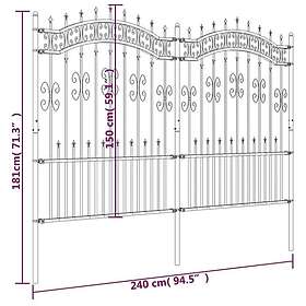 vidaXL Staket med spjuttopp svart 190 cm pulverlackerat stål 151087