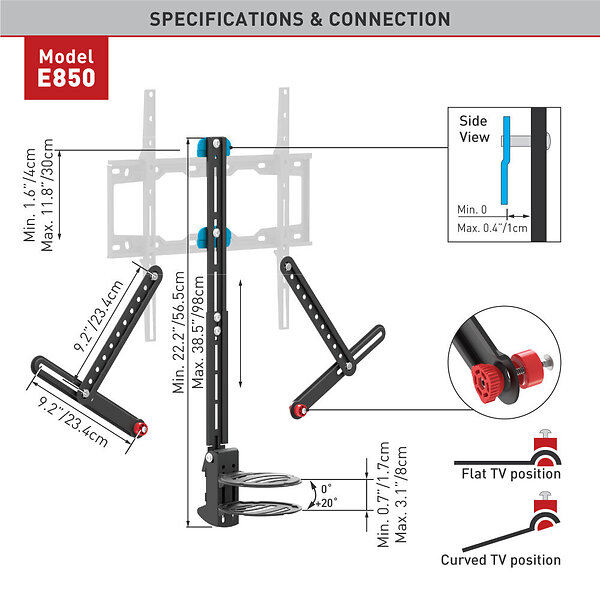 Placement: Bureau, Type de monture: Pince, TV/Écran: TVEn savoir plus