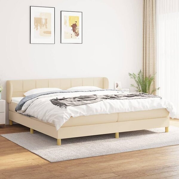 vidaXL Ramsäng med madrass gräddvit 200x200 cm tyg 3126834