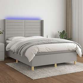 vidaXL Ramsäng med madrass & LED ljusgrå 140x190 cm tyg 3138949