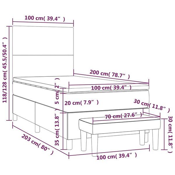 vidaXL Ramsäng med madrass mörkgrå 100x200 cm tyg 3136974