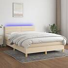 vidaXL Ramsäng med madrass & LED gräddvit 140x200 cm tyg 3133802