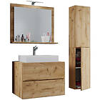 VCM NORDIC Lendas M badrumsmöbelset spegelglas, keramik och naturfärgad melamin (set om 4)