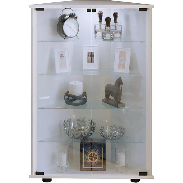VCM NORDIC Jecka hörnskåp, med 2 luckor och 4 hyllplan glas och vitt trä