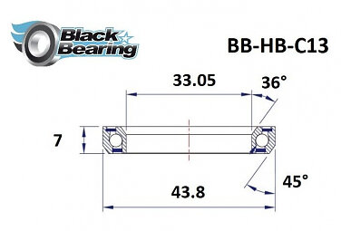 Black Bearing 36/45° Steering Silver 33.05 x 43.8 x 7 mm