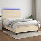 vidaXL Ramsäng med madrass & LED gräddvit 140x200 cm tyg 3134962