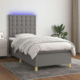 vidaXL Ramsäng med madrass & LED mörkgrå 90x200 cm tyg 3135726