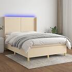 vidaXL Ramsäng med madrass & LED gräddvit 140x200 cm tyg 3138722