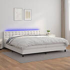 vidaXL Ramsäng med madrass & LED vit 200x200 cm konstläder 3134244