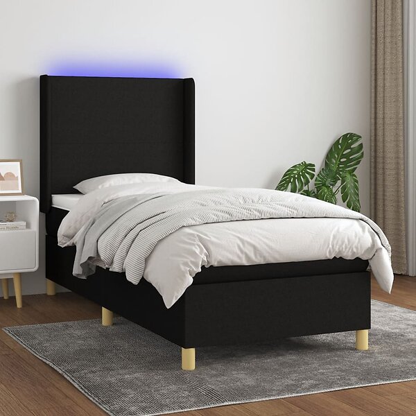 vidaXL Ramsäng med madrass & LED svart 90x190 cm tyg 3138679